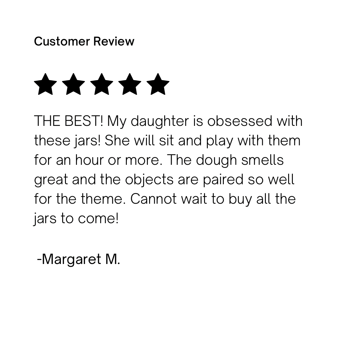 - NOTE:Â The main photo shows both the front and back of the jar, plus the lid. You'll receive one 8 oz jar, half filled with our dough (4 oz) and the other half with themed trinkets.